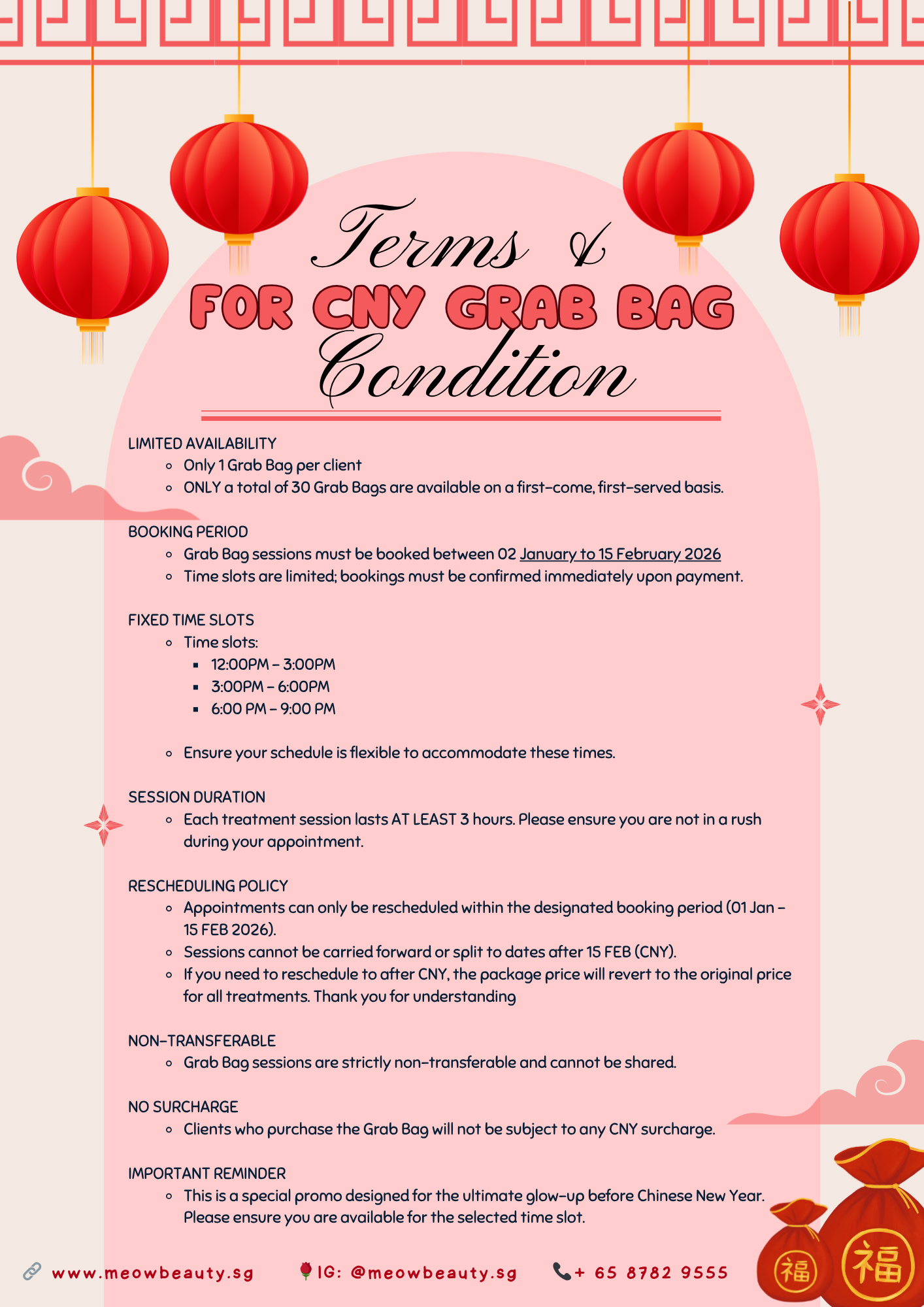 – Blackout dates apply: Not valid for booking during Chinese New Year and Christmas week